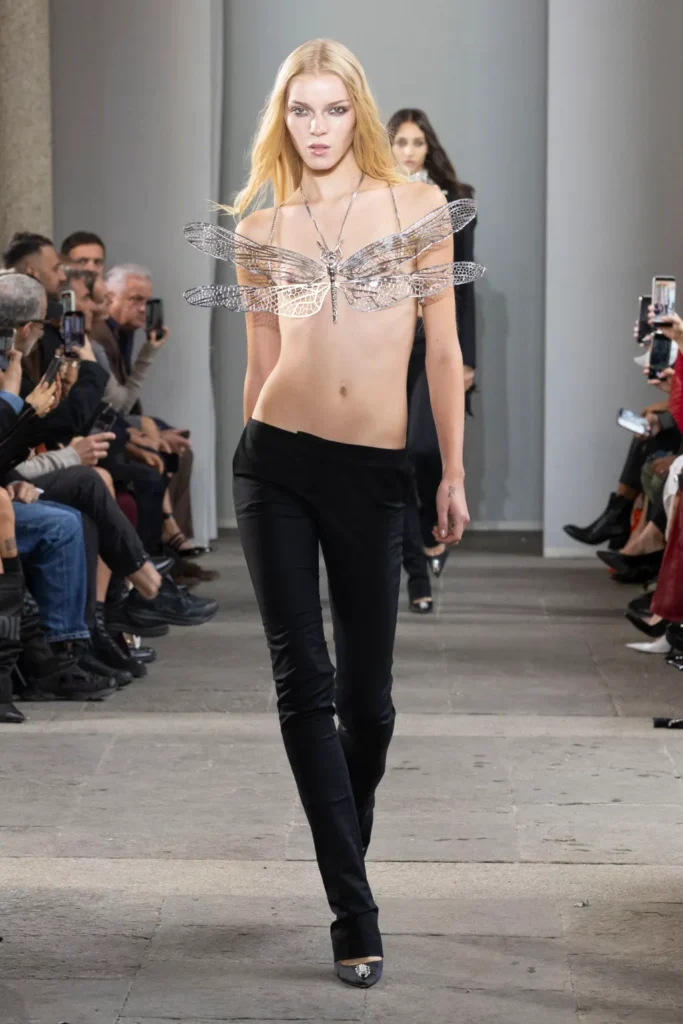 With a clear focus on nighttime glamour and red-carpet appeal, the collection leaned heavily toward partywear rather than daywear. It was a clever strategy for maximum editorial impact, positioning Blumarine as an after-dark fantasy brand—though the question remains whether Koma will continue to nurture the daylight muses of the house in seasons to come.