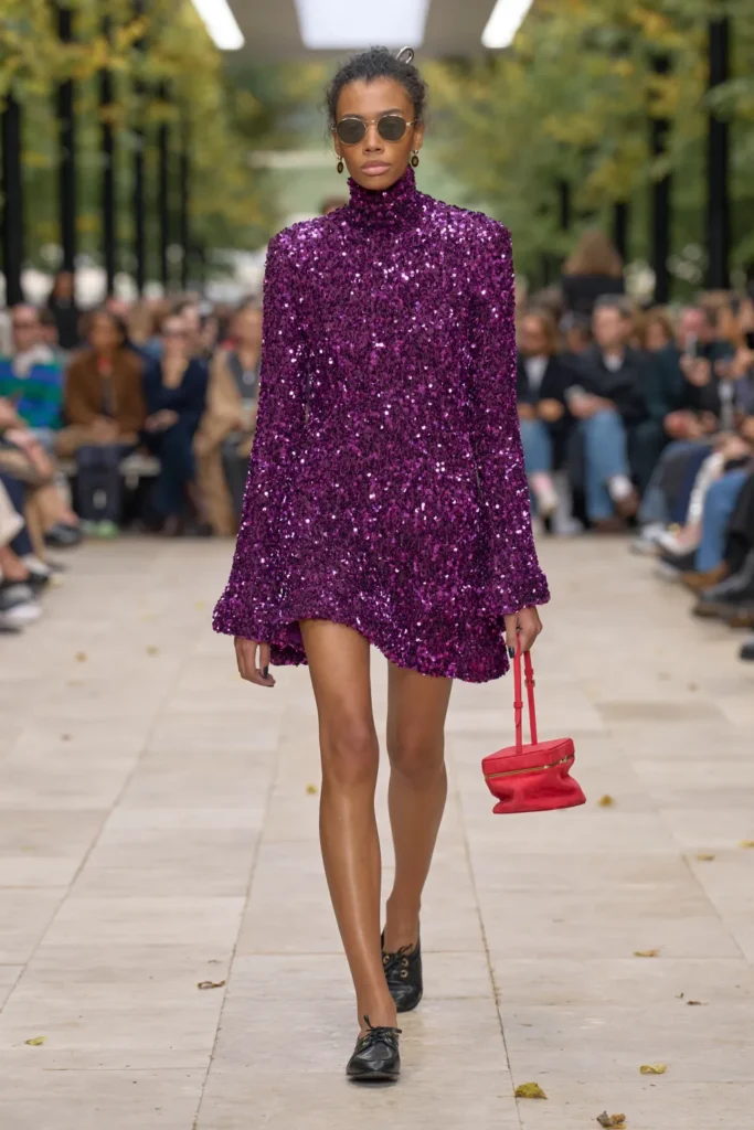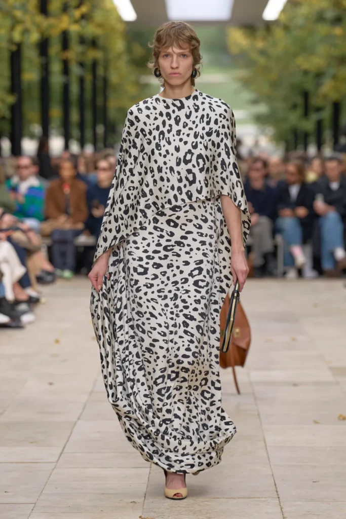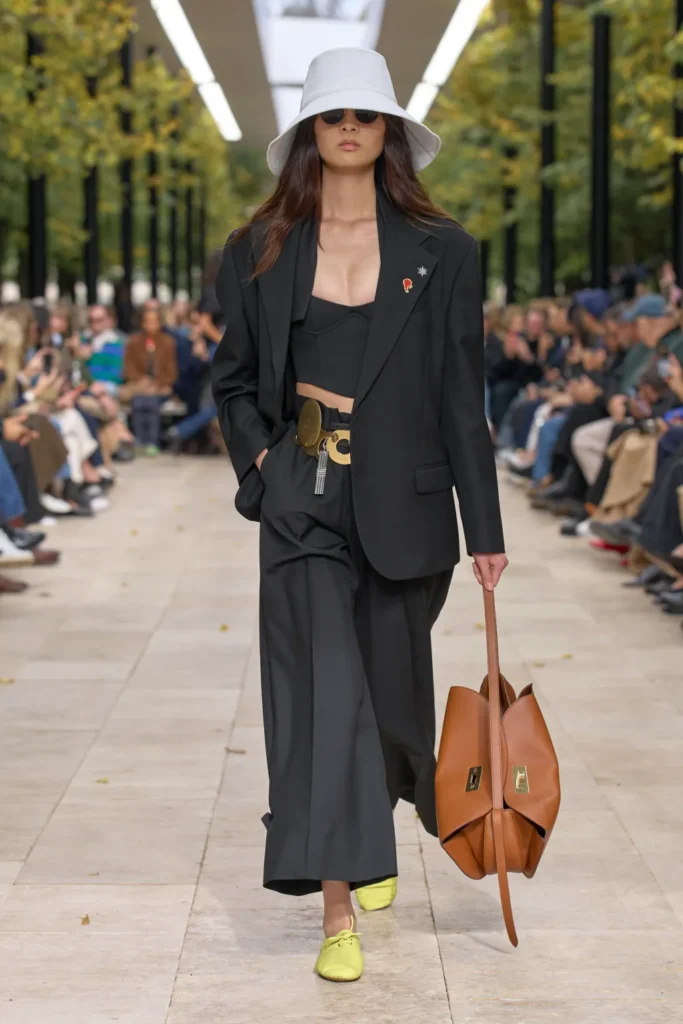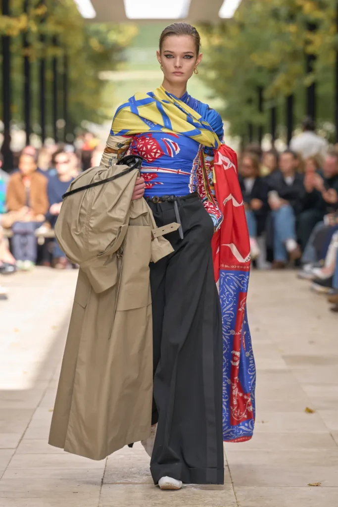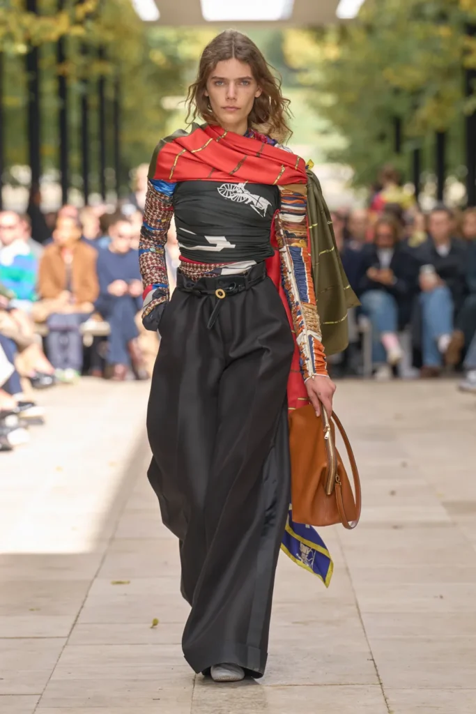 This new Celine defies the myth of Parisian restraint. Scarflike collars spilled generously over coats and blazers; bohemian jewelry caught the light; practical shoes replaced stilettos; and handbags were slung across shoulders or tucked casually under arms — an attitude, not a statement.