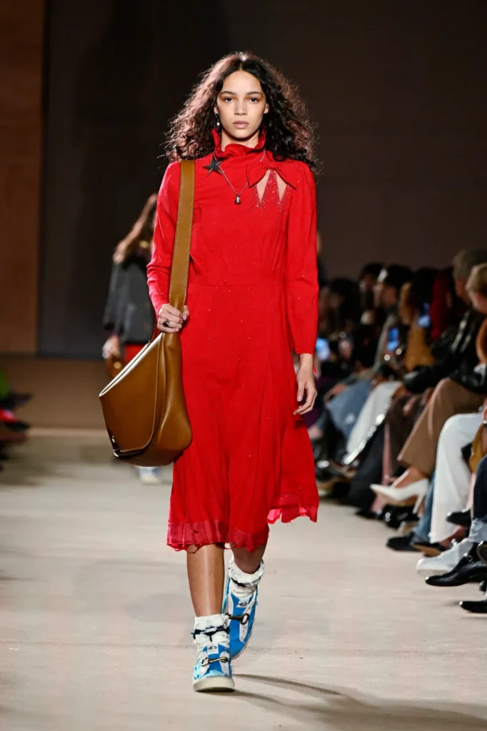 Sustainability remained embedded in the process. “The runway is a laboratory,” Vevers said, describing experiments that may not all reach production but seed broader ideas. At Coach, upcycling isn’t aesthetic garnish; it’s structural. Even the bags nodded to Americana ephemera, including designs crafted from repurposed baseball gloves.