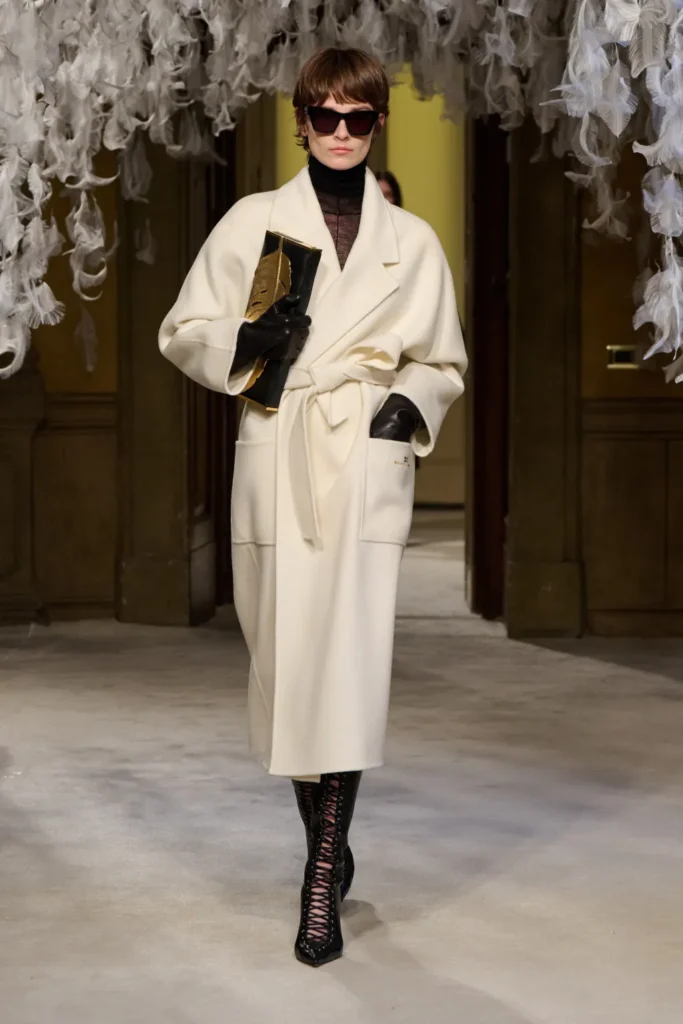 For Fall 2026, Elisabetta Franchi delivered a collection that distilled her message to its sharpest point: authority is a style choice. Titled “Hear Me Roar,” the lineup fused Victorian severity with modern seduction, proposing a wardrobe built on control—of image, of silhouette, of narrative.