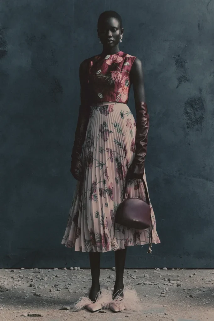 Erdem Moralioglu marks the approach of his label’s 20th anniversary with a collection steeped in personal history and the opulence of Belle Époque France. The Pre-Fall 2026 lineup channels those brief decades before World War I—an era of artistic freedom, social change, and unabashed decadence—filtered through Erdem’s signature romanticism.