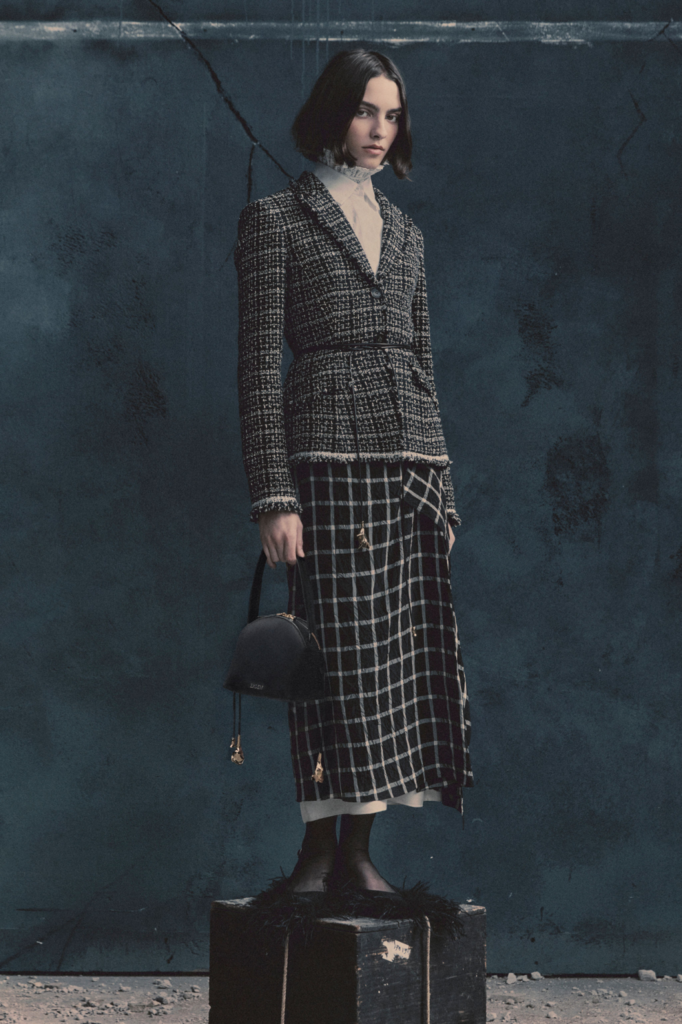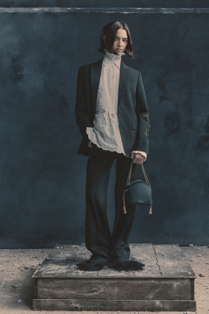 To temper the romance, he sharpens the tailoring. Those ruffled blouses pair with slim tweed jackets; lace trousers meet double-faced cashmere coats cut with a masculine clarity. The tension between softness and structure grounds the collection and reminds us why Erdem has endured: his ability to merge nostalgia, craft, and modernity with unwavering precision.
