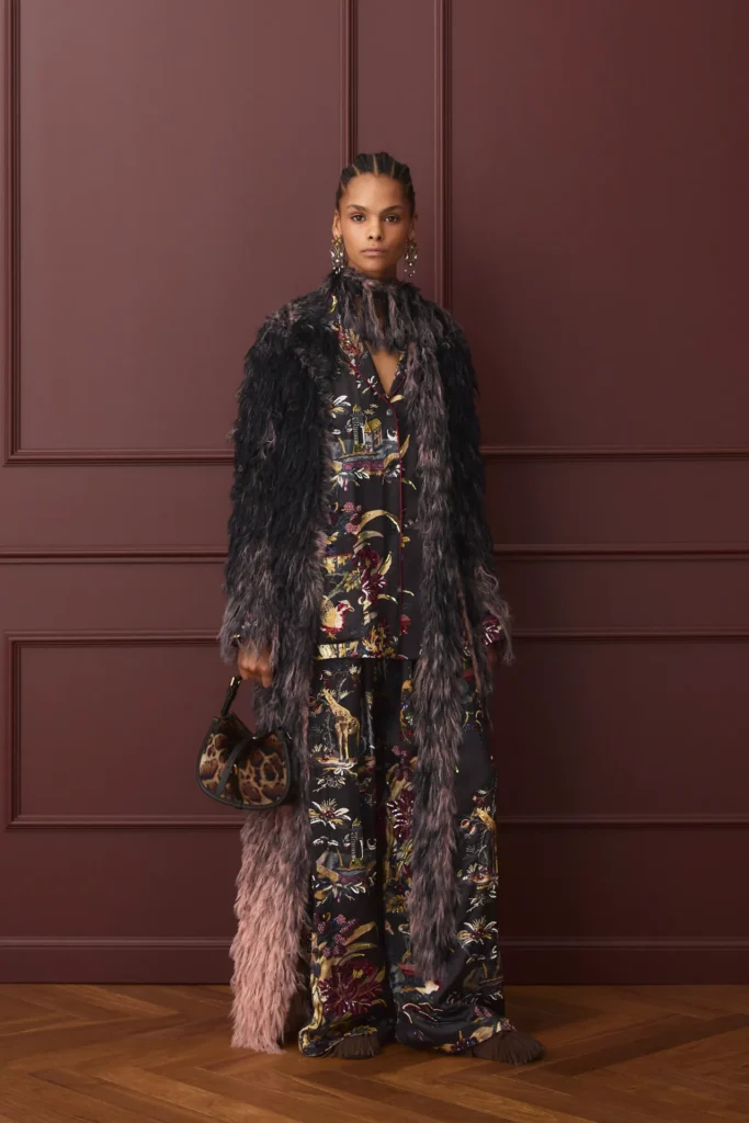 Pre-collections have become De Vincenzo’s most effective arena for balancing Etro’s heritage with his own perspective. This season, he translates the brand’s signature visual exuberance into a wardrobe that suggests a nomadic interior world—one where maximalist décor, saturated palettes, and cultural crosscurrents merge seamlessly.