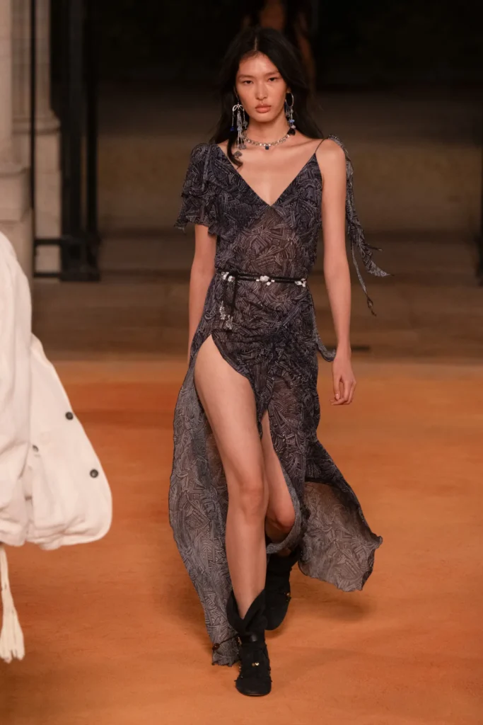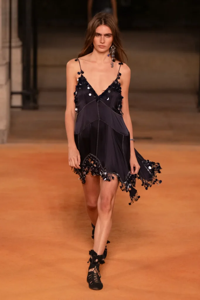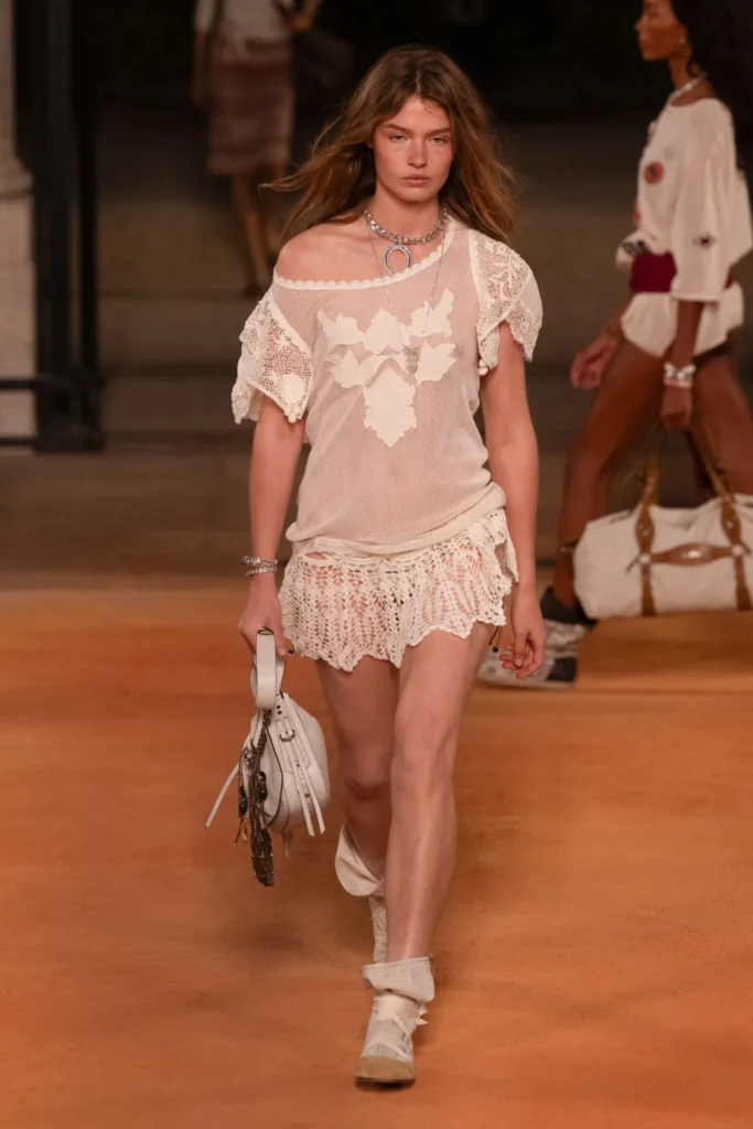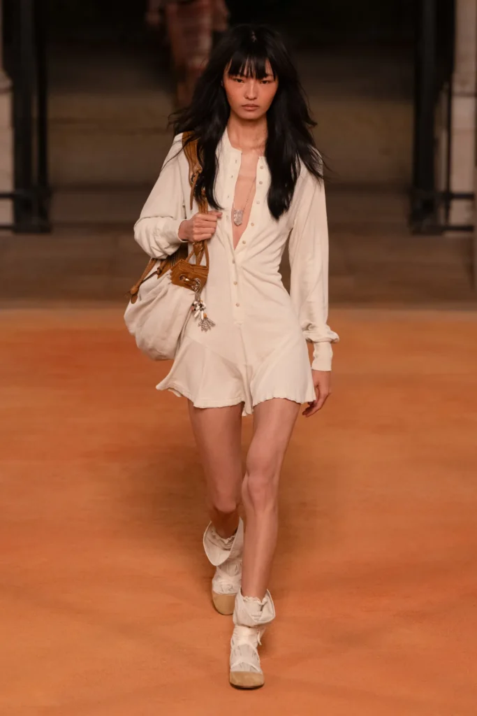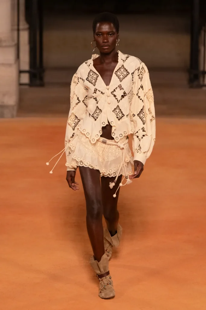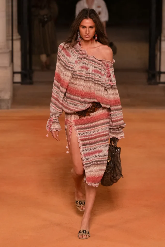 For her second outing as creative director, Kim Bekker leaned into a free-spirited hippie mood, channeling her own memories of solo travel into a collection that balanced practicality with bohemian glamour. Though Isabel Marant still collaborates closely with her, this season felt unmistakably Bekker’s.