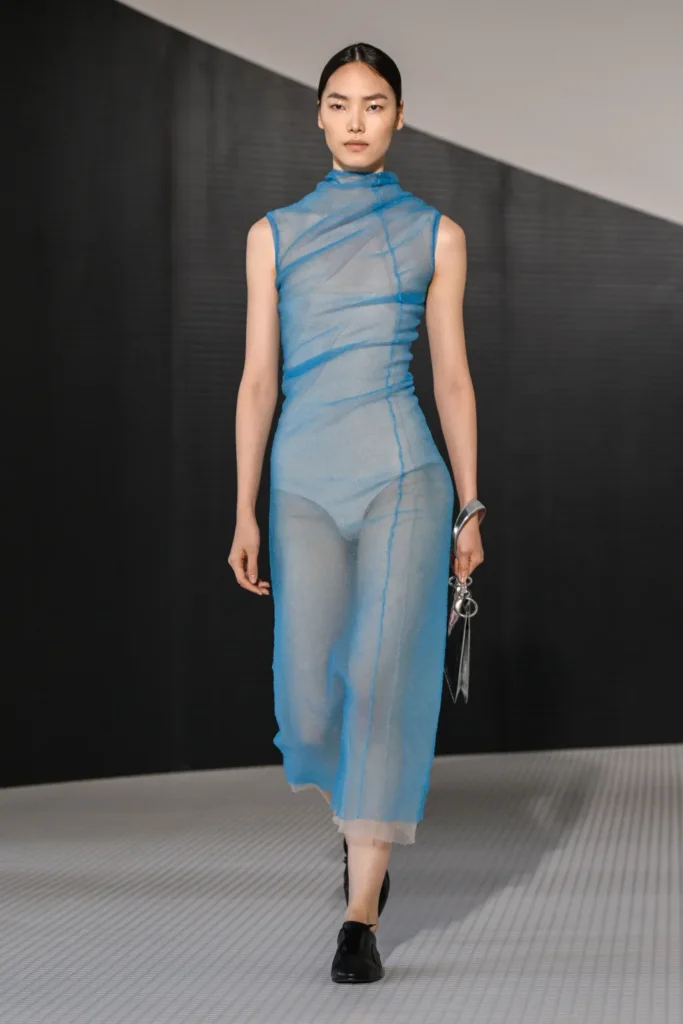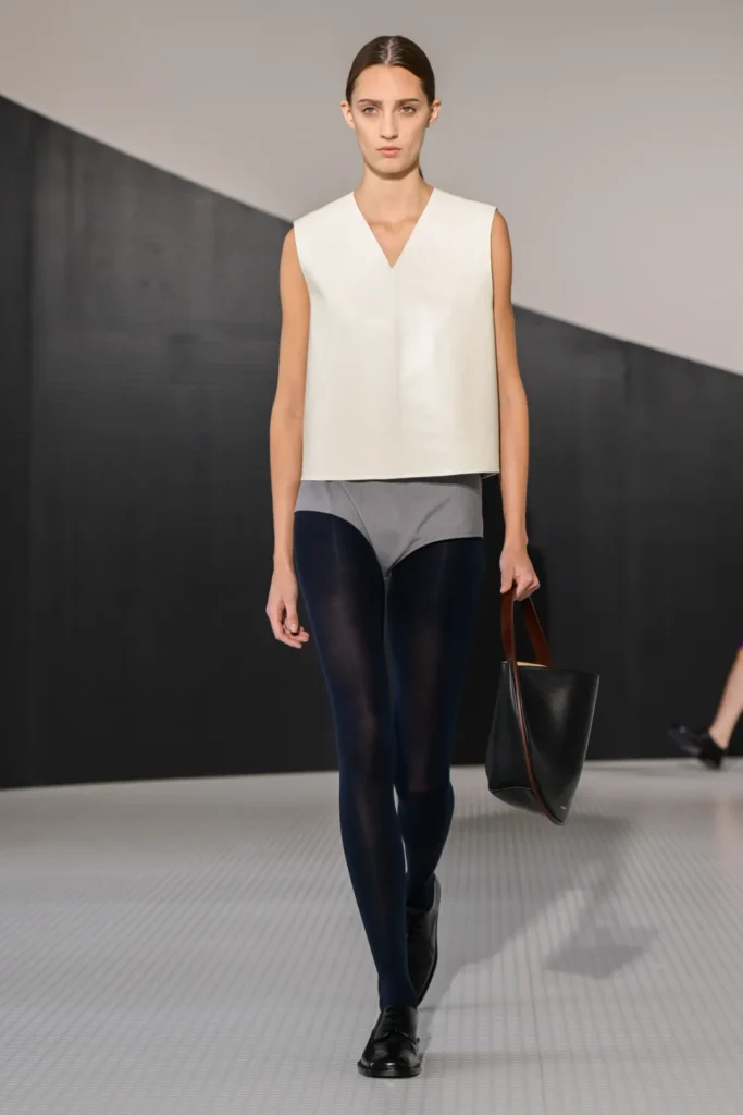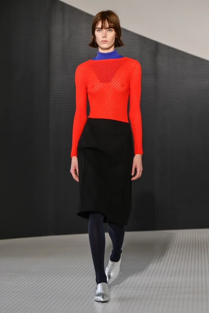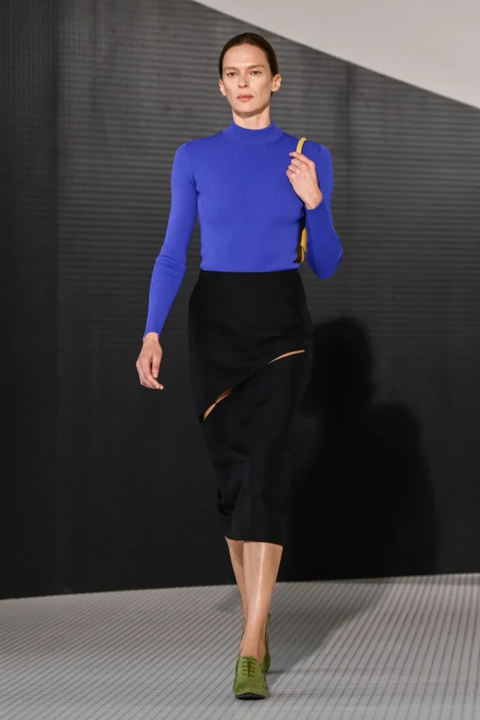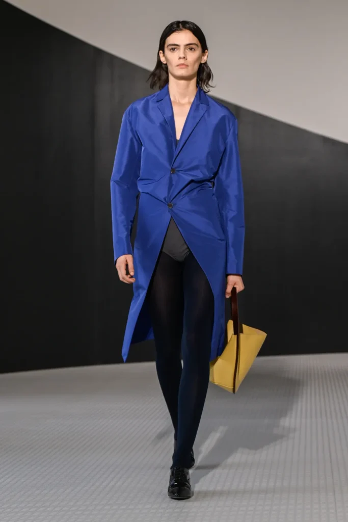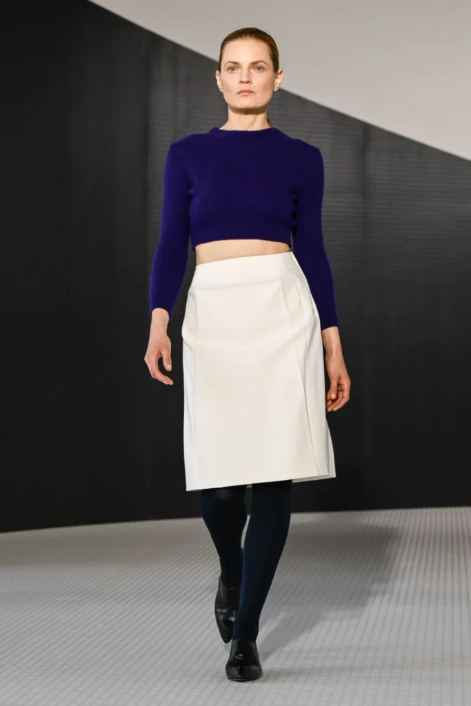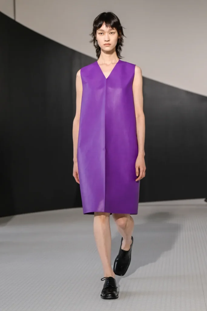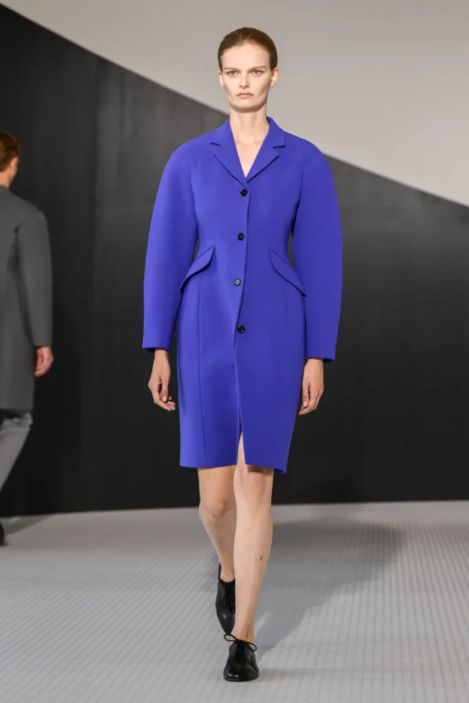 Rather than continuing the artistic flourishes and cinematic storytelling introduced by Luke and Lucie Meier during their seven-year tenure, Bellotti revisited the sharp graphic purity that defined Raf Simons’ era at Jil Sander between 2005 and 2012. His vision: to strike a balance between modernity and timeless classicism while reclaiming the brand’s essential elegance.