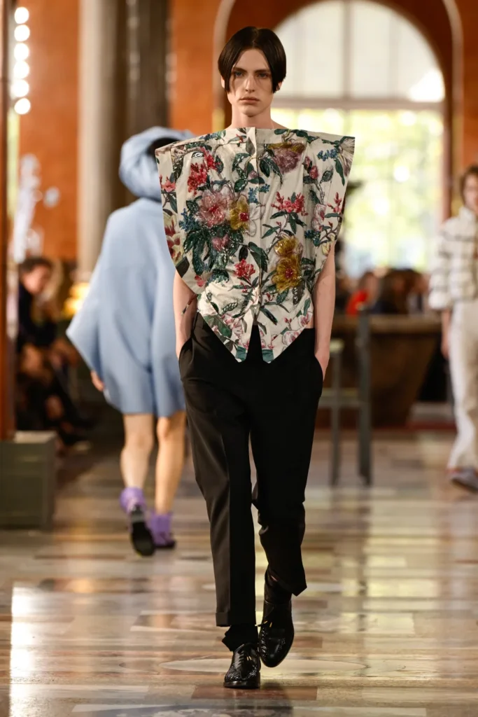 “It’s about praising intimacy, dressing for yourself first,” he told reporters backstage. “Getting dressed at home can be fun, too. The mood I wanted to share was the serenity that comes from being in your own space.”