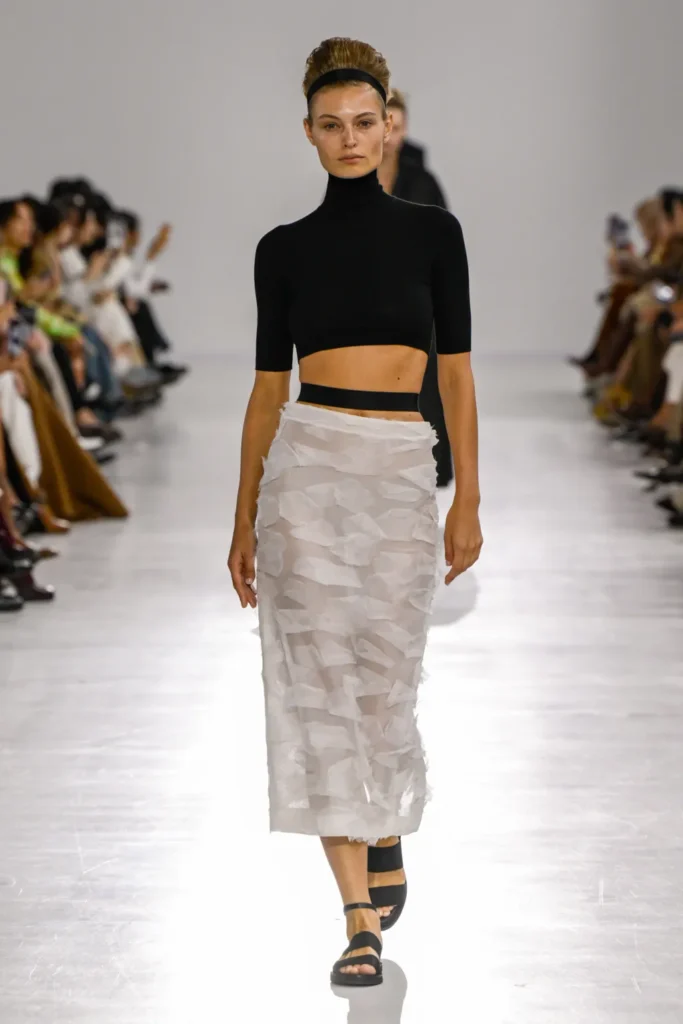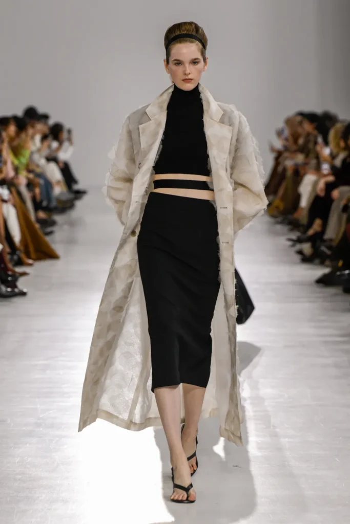 Unexpectedly, there were few coats—the brand’s historic backbone—but the short trench coats and fitted suits are sure to resonate commercially. What emerged was a vision of Max Mara that felt lighter, sensual, and contemporary, perfectly attuned to modern women’s need for versatility and sophistication.