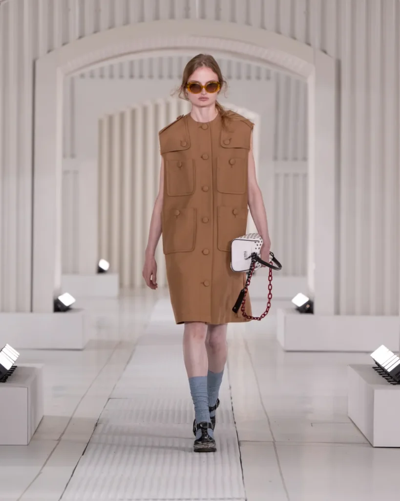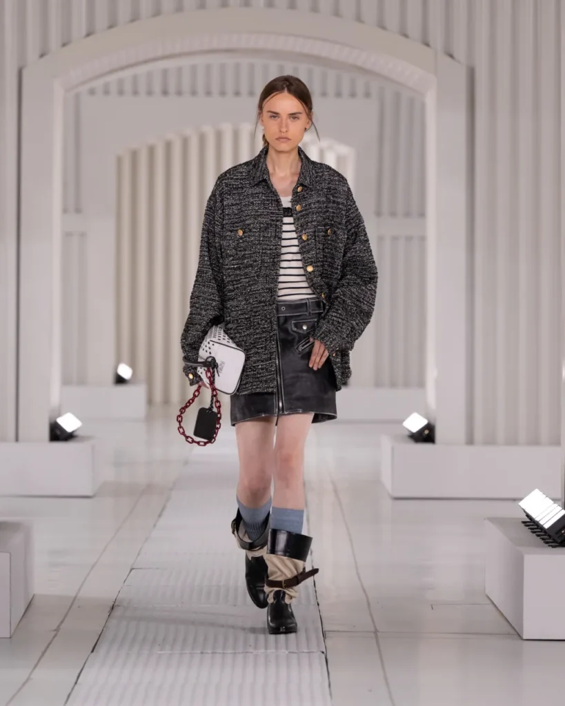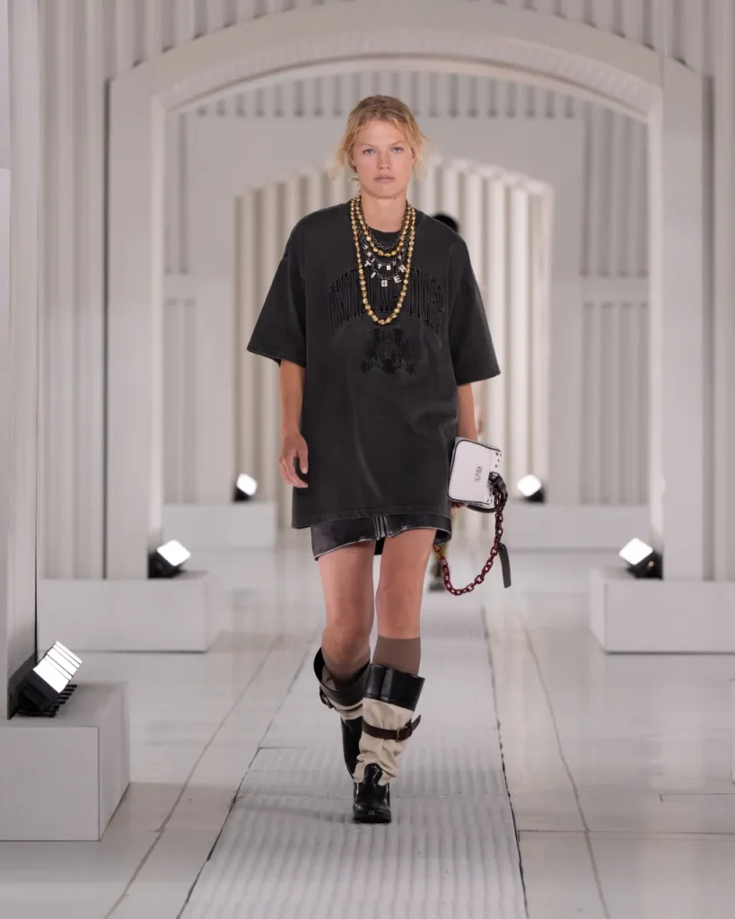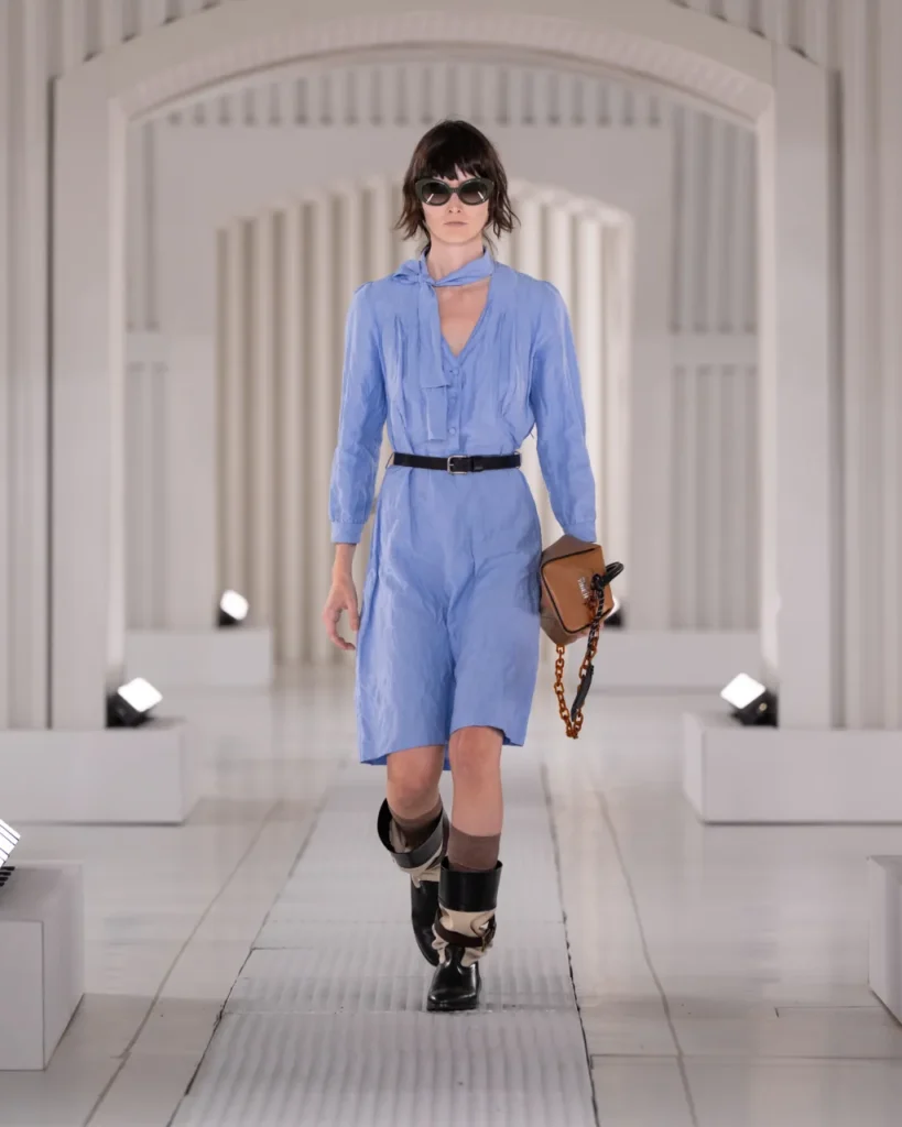 Footwear was a collection highlight: satin ballerinas reinterpreting the Mexico 66, alongside leather and suede boots and sandals designed for both urban life and the summer festival circuit.