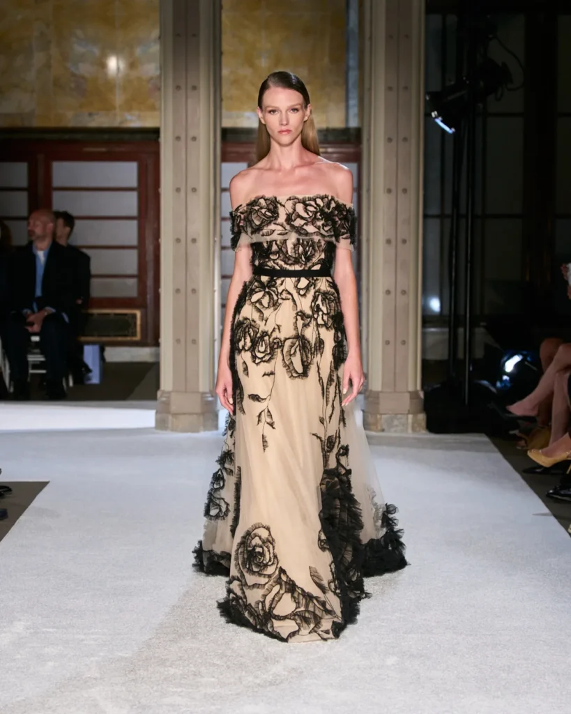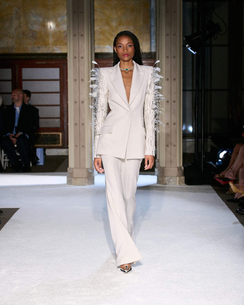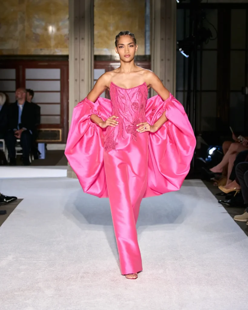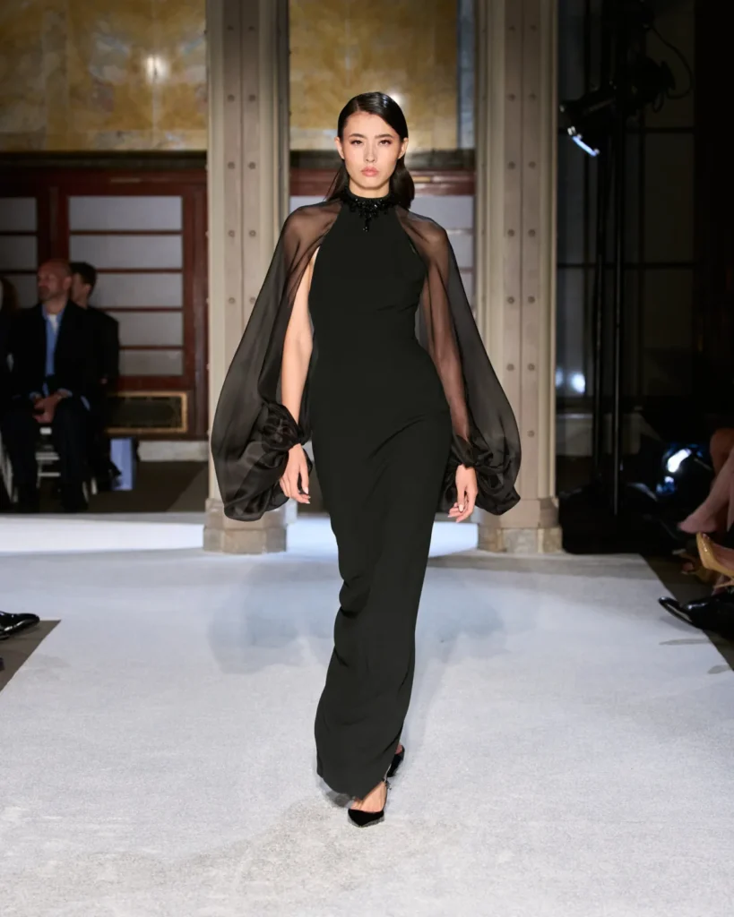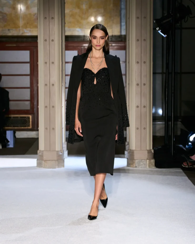 The collection also highlighted versatile tailoring: sharp tuxedo jackets, pencil skirts, and high-waisted trousers grounded the lineup, proving Roland’s vision extends beyond the red carpet.