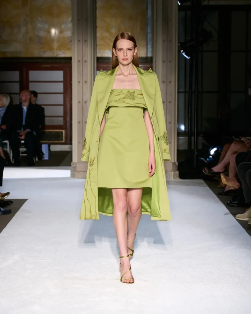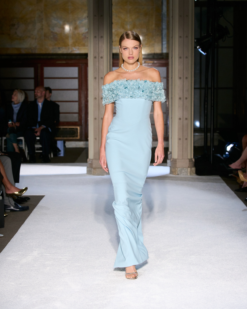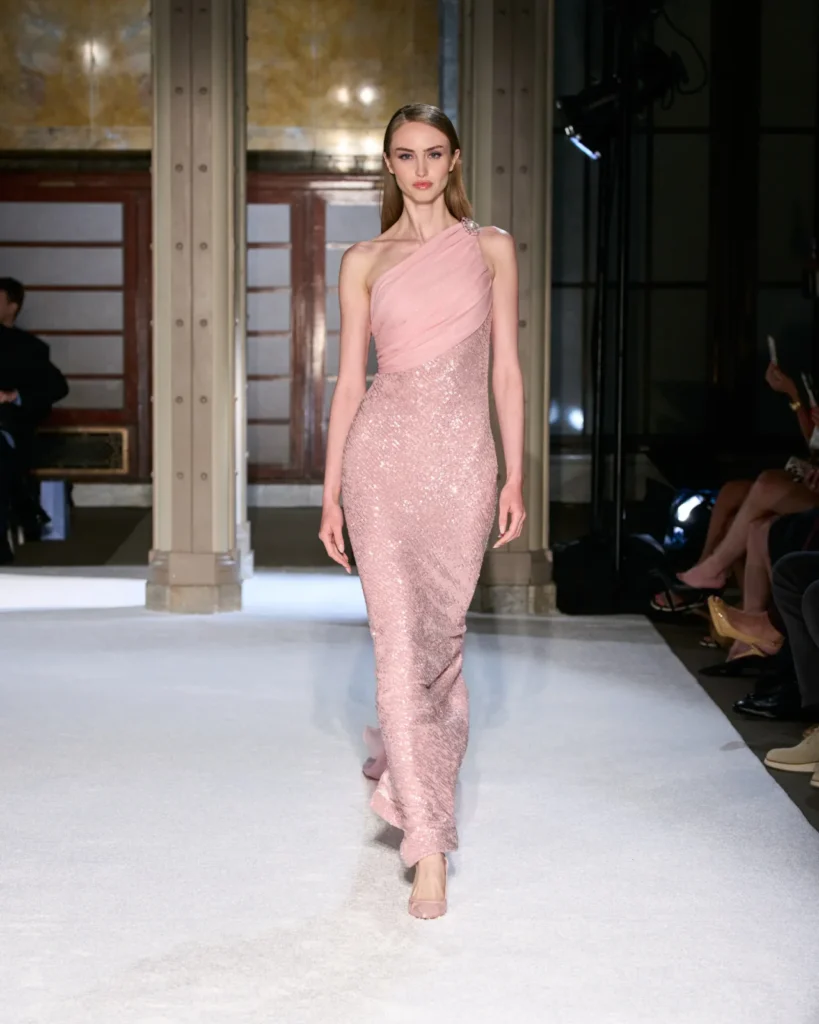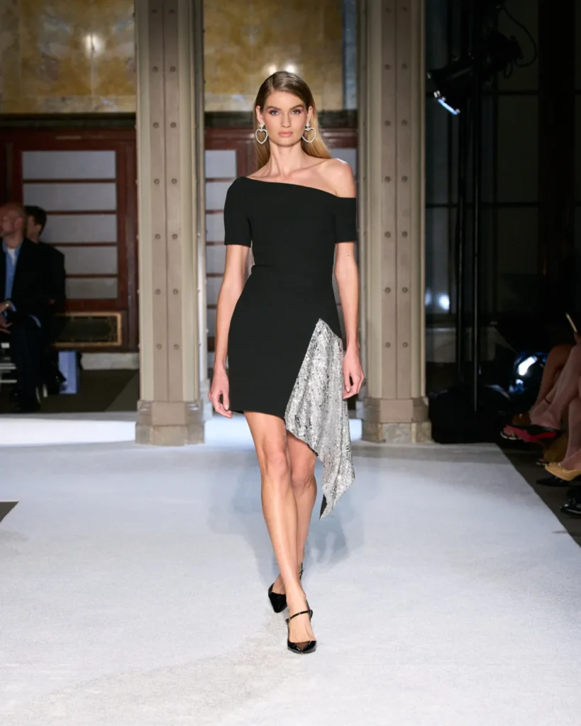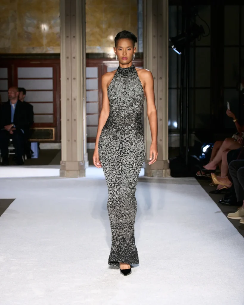 At New York Fashion Week, Pamella Roland turned the runway into a living gallery, where each look resembled a modernist artwork. The collection was a dialogue between pictorial abstraction and evening glamour, seamlessly balancing architectural tailoring with softer, more fluid draping.