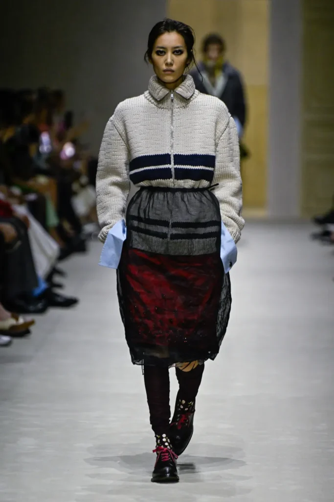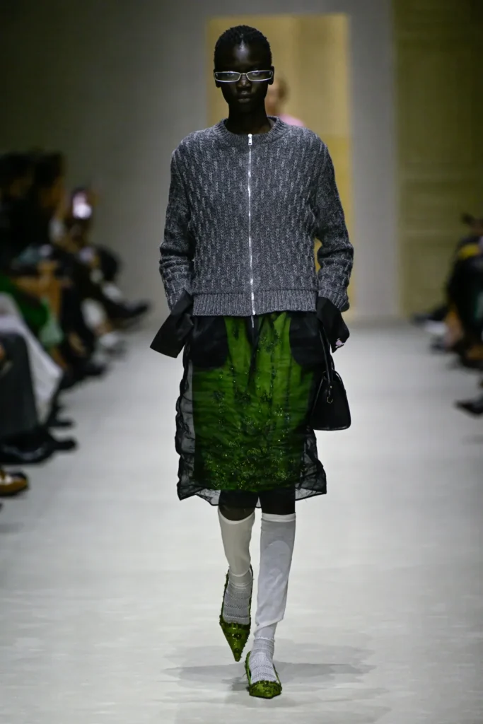 At Prada, disorder was deliberate. For Fall 2026, Miuccia Prada and Raf Simons delivered a rigorous meditation on layering—both literal and conceptual—where garments were stripped back, built up, and reconfigured in motion.