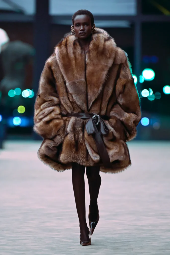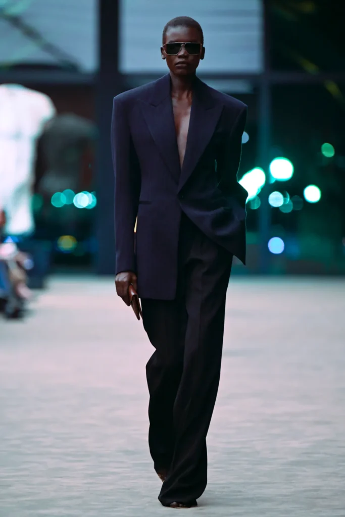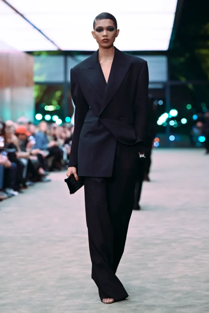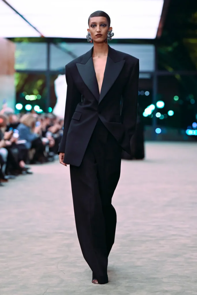 Notably absent were handbags, despite their commercial weight. Vaccarello continues to withhold them from the runway, insisting the clothes carry the narrative. In a season crowded with black suits across fashion capitals, Saint Laurent’s stood apart—not louder, but purer.