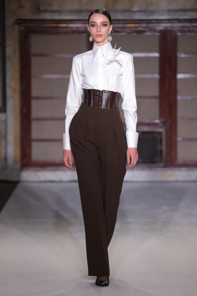 Hudson, long celebrated for his high-octane tailoring and red-carpet bravado, softened the volume without sacrificing impact. Models glided across a white carpet to a subdued soundtrack, reframing his signature opulence as something more private and deliberate. The message was clear: power doesn’t always need to shout.