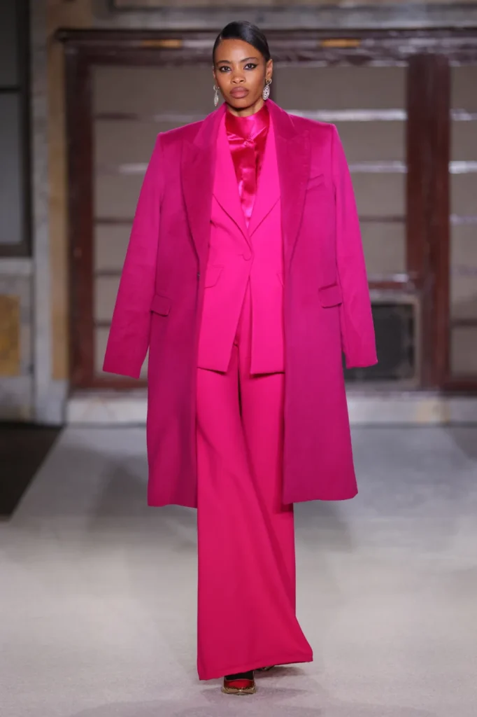The designer cited a defining cultural moment as a starting point—Aretha Franklin stepping in for Luciano Pavarotti at the 1998 Grammys. That last-minute performance, charged with authority and grace, became a metaphor for the Hudson woman: prepared, commanding, unforgettable.