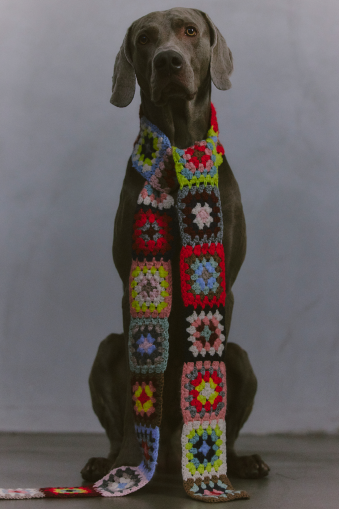 McCartney explores 1970s softness through fluid dresses with ’40s-influenced draping, peplums, scarf-like shoulders, and corded lace. Her memories of rural Scotland surface in oversized recycled-cashmere cardigans, ribbed turtlenecks paneled with vegan leather, richly textured Aran knits, and horse-pattern intarsia.