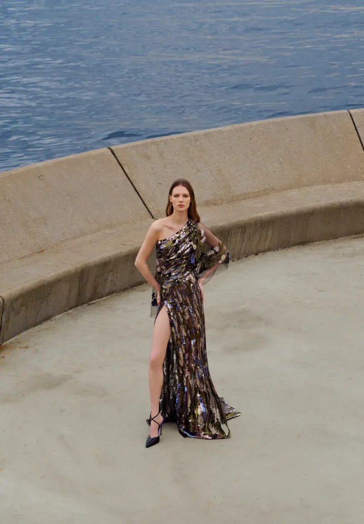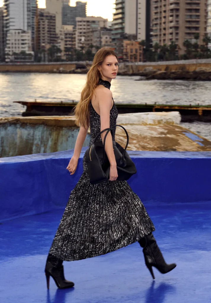 The Italian entrepreneur and fashion figure, photographed in a mix of black-and-white and color, embodies the modern Guess woman in key pieces from the collection, including the Bellflower pants, the house’s signature bandage dress, and the Camden bag. The visuals lean into the brand’s legacy of bold femininity, reinterpreted through a contemporary lens.