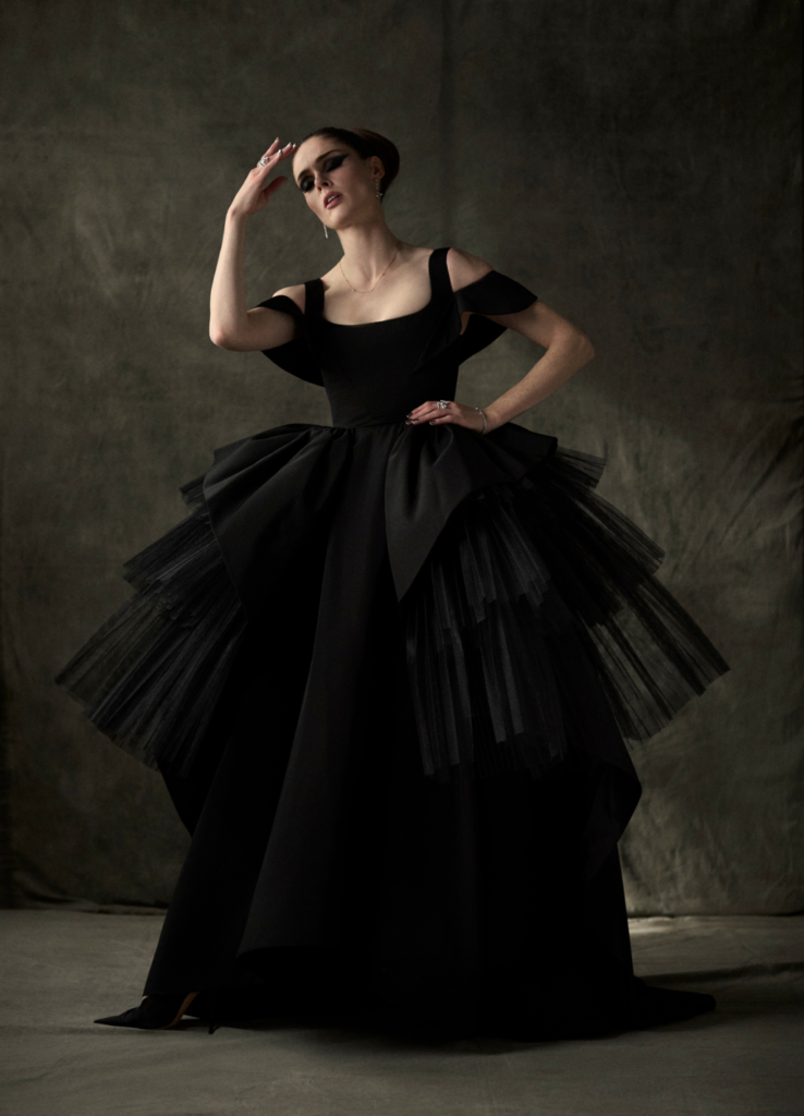 While Murad tempered his use of heavy embellishment this season, he did not abandon shine altogether. Select suits and statement blazers featured subtle sparkle, high collars, and sculpted shoulders, reinforcing the tension between femininity and strength.