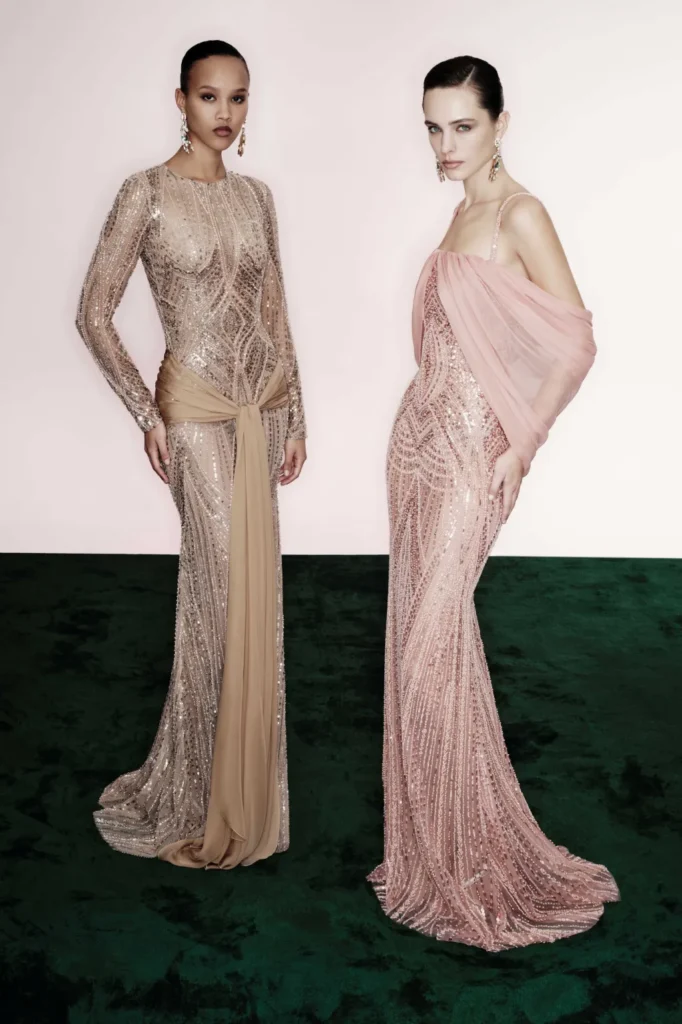 For Pre-Fall 2026, Zuhair Murad looks back more than a century to Paris’ Belle Époque, drawing inspiration from the calm before World War I, when women were gaining autonomy, social visibility, and freedom of movement. That moment of poised confidence informs a collection that balances softness and structure with controlled opulence.