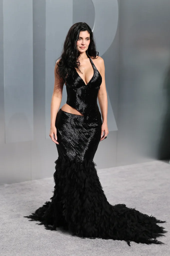 Jenner embraced high drama in a sharply tailored McQueen design that combined sculptural structure with a sleek silhouette. The look felt quintessentially McQueen: bold, precise, and unapologetically glamorous—an ideal statement for fashion’s most photographed after-party.