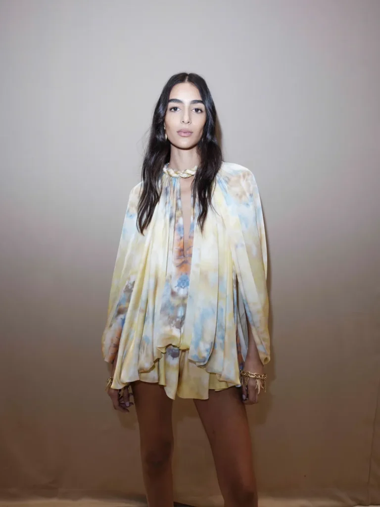 Nicky Zimmermann’s latest collection shimmered with psychedelic joy — a sun-soaked daydream inspired by the bohemian artists of Lavender Bay, a seaside enclave outside Sydney that thrived in the free-spirited 1970s. “They threw the most incredible parties,” Zimmermann recalled backstage. “If the Rolling Stones were in town, they’d end up in Lavender Bay hanging out with the artists.”